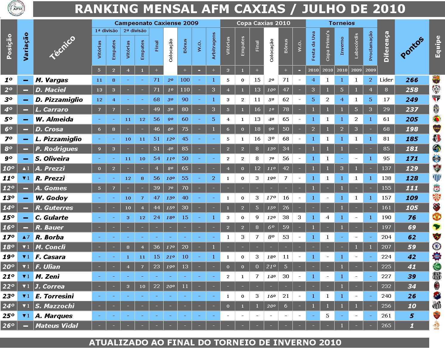 Já no domingo na cerimônia de entrega dos prêmios, Nelson Prezzi também um antigo botonista, juntamente com nosso presidente Daniel Maciel emocionaram a todos os presentes, através das homenagens prestadas aos fundadores presentes, Marcos Zeni, Vanderlei Duarte e Adauto Celso Sambaquy, além das homenagens a Luiz Ernesto Pizzamiglio, pelas 10 conquistas de campeonatos caxienses, Airton Dalla Rosa, pelo título do campenato estadual de 1975 e a Daniel Pizzamiglio, pelo título estadual de 2008.